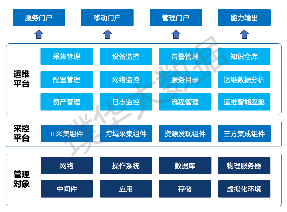 配置管理将以应用为中心,维护各类资源的配置属性、关联关系,形成运维活动的作战主地图,并与指标、告警、日志、操作、流程等数据整合,为监、管、控、析等运维管理提供数据支撑。通过流程和自动发现等手段维护配置数据,达到实时、准确的反映IT环境,保证配置数据鲜活、有效。